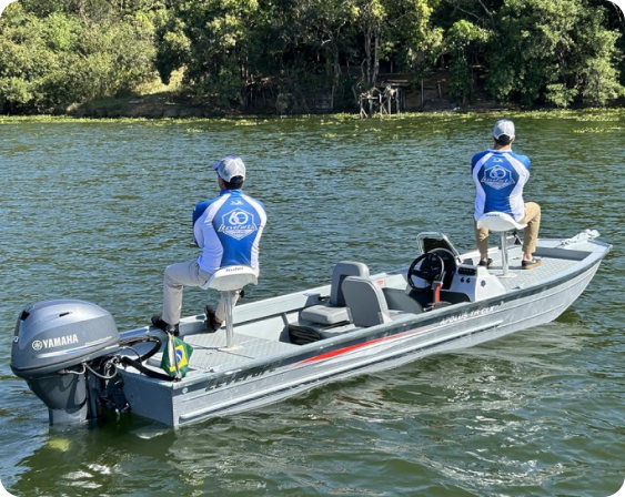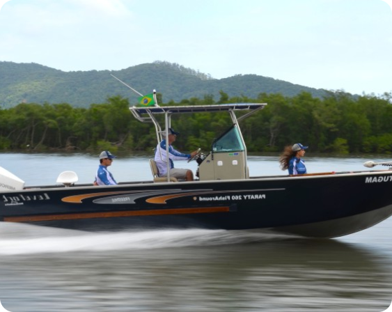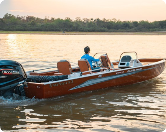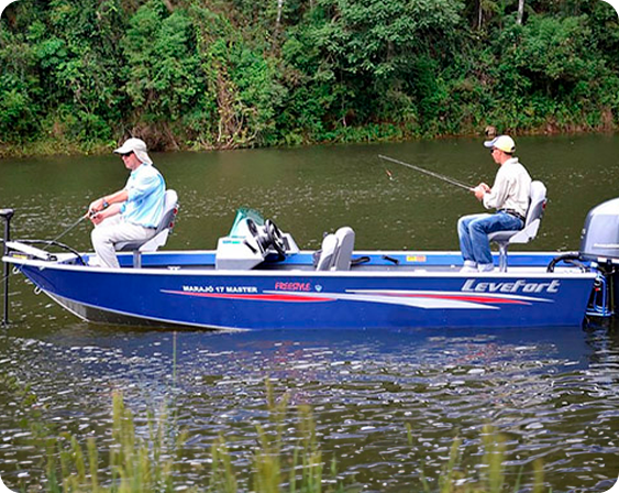 Ideal para navegação em grandes rios, lagos e canais. Apta para 3 modalidades de pesca e passeios. Maior autonomia e recebe motores de até 250HP.