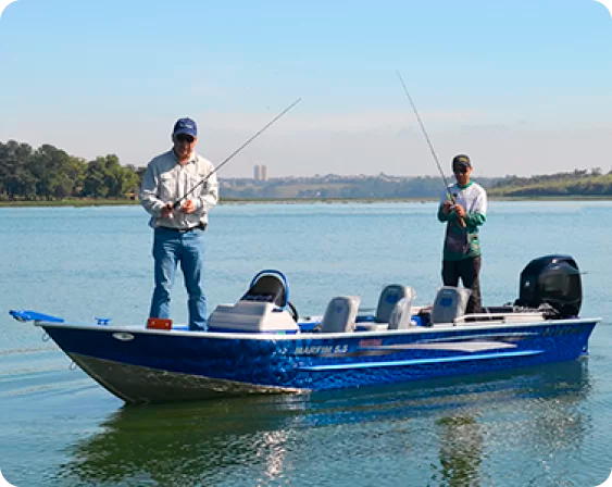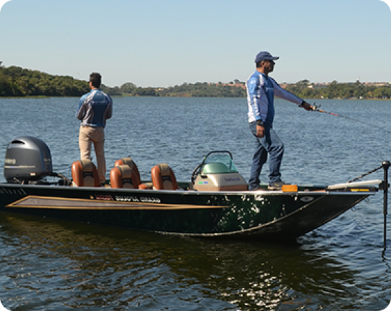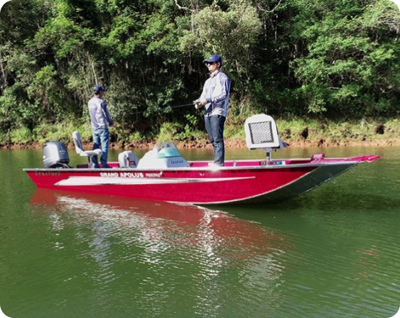 Supera com mais facilidade as eventuais ondas encontradas em lagos artificiais, rios e canais. Layout apropriado para pesca de arremessos de iscas artificiais ou naturais.