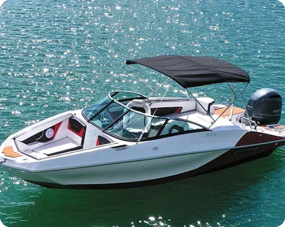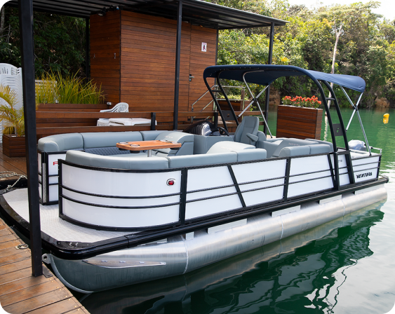 Pioneira e inovadora. Casco equilibrado para uma navegação veloz. Oferece uma área maior de sombra com o toldo aberto. Possui uma ampla área de popa.