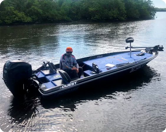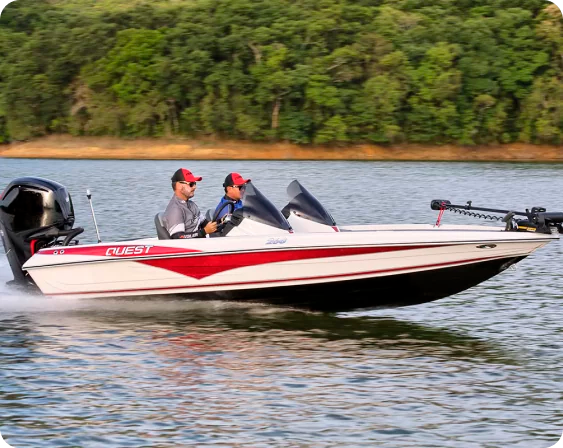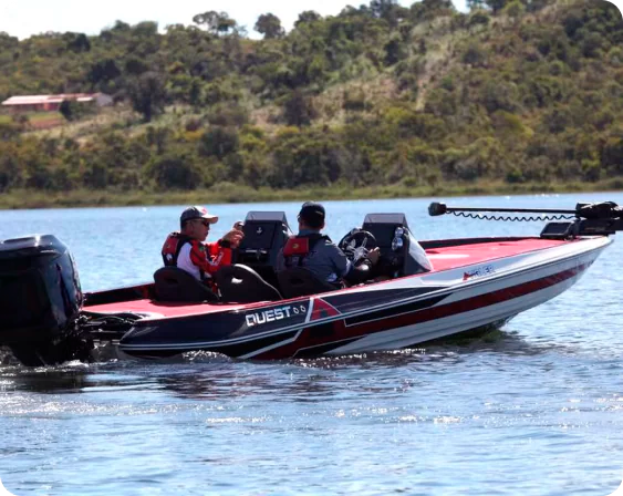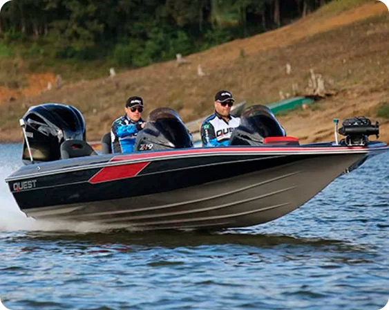 Barco mais rápido da Quest. Possui um espaço interno excelente para pesca e diversos compartimentos. Navega bem e com segurança.