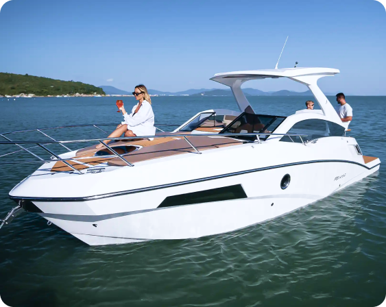 A evolução em forma de barco. Supere suas expectativas a bordo. Embarcação projetada para ter o máximo de desempenho junto com o maior conforto.