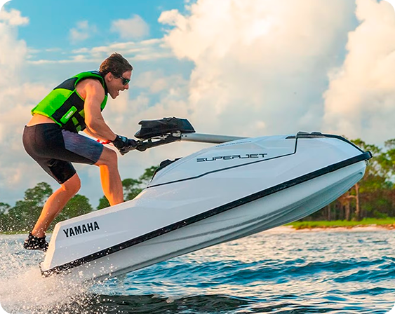 SuperJet é equipado com o motor TR-1® de 3 cilindros e 4 tempos da Yamaha, que oferece aceleração emocionante com um motor compacto e leve.